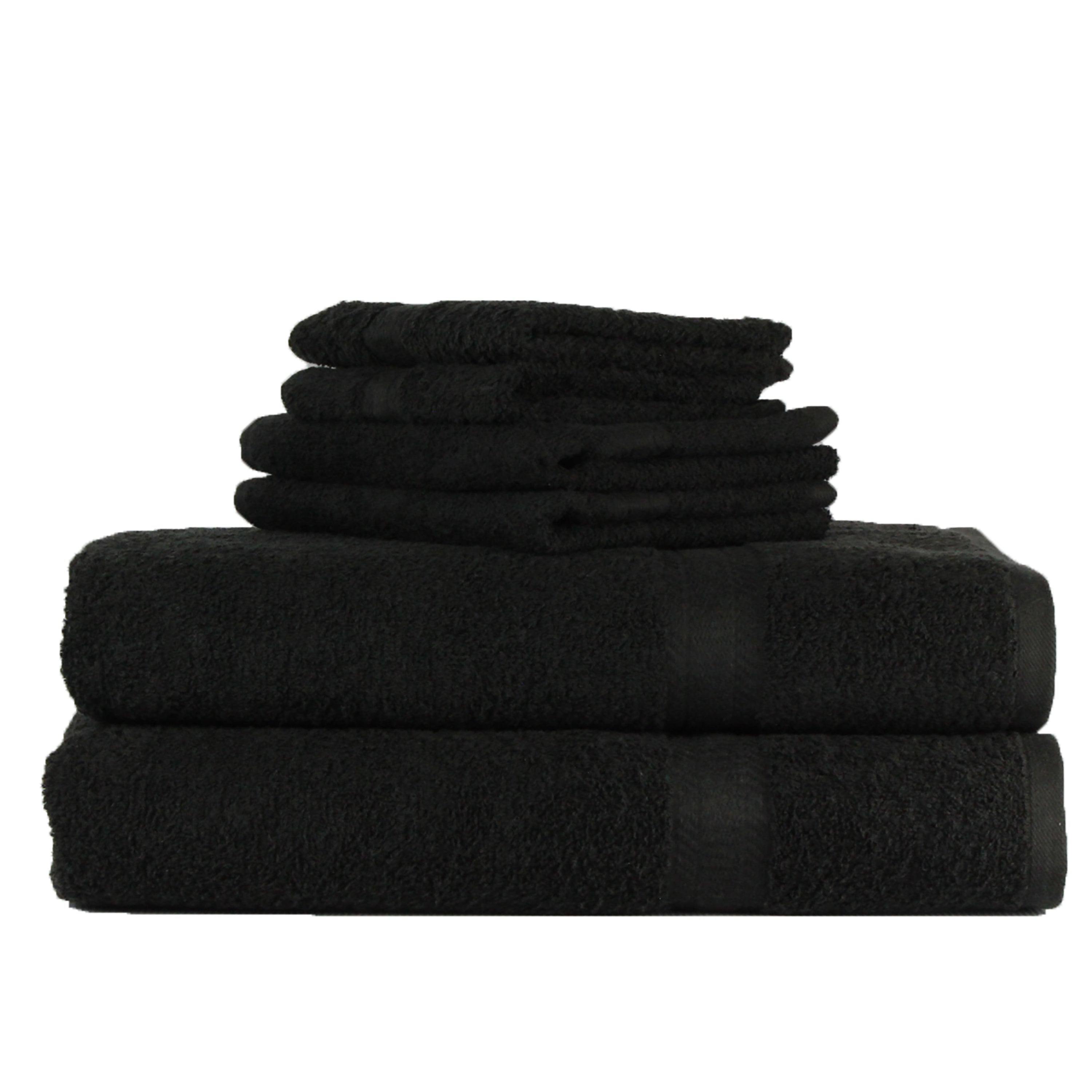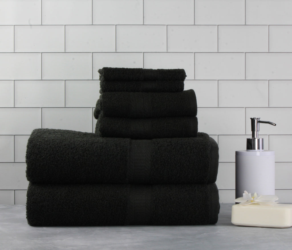 Basic Bath Collection - 6 Piece Towel Set, Black (2 Bath, 2 Hand & 2 Wash)